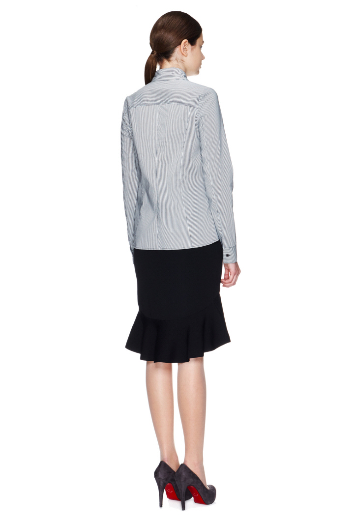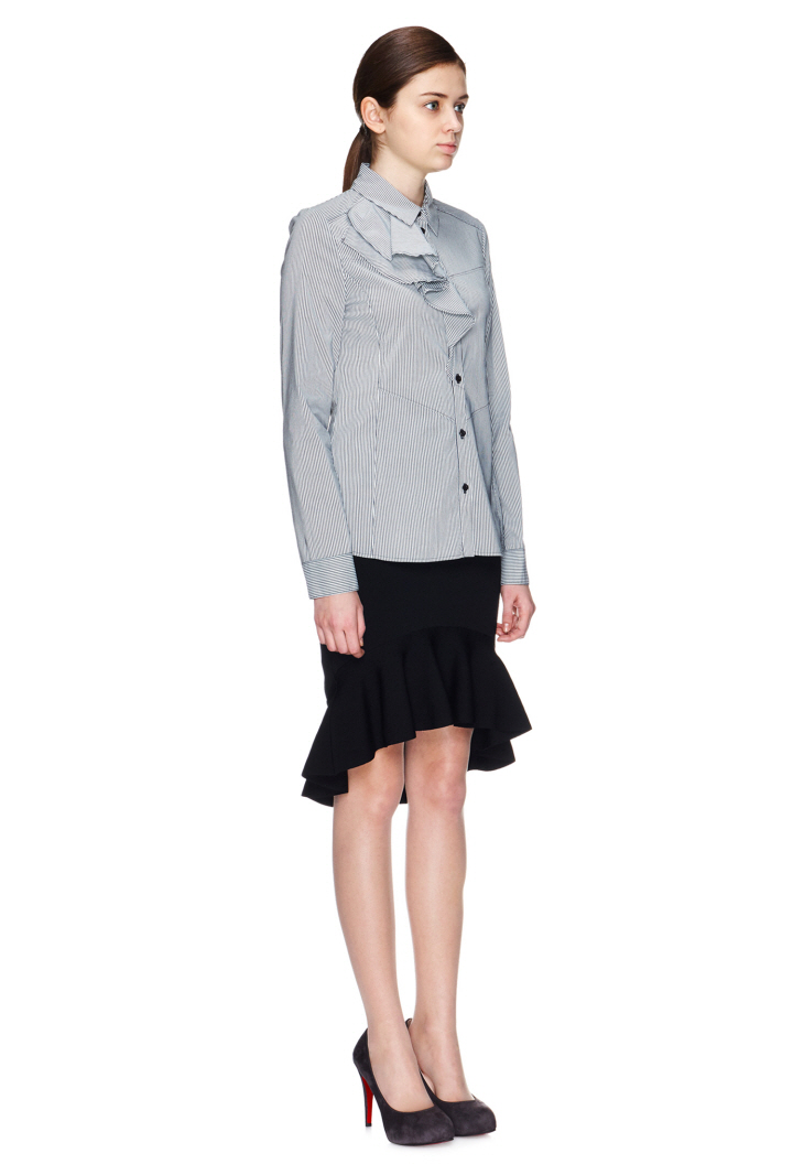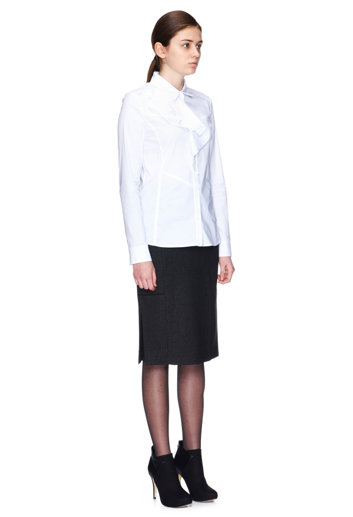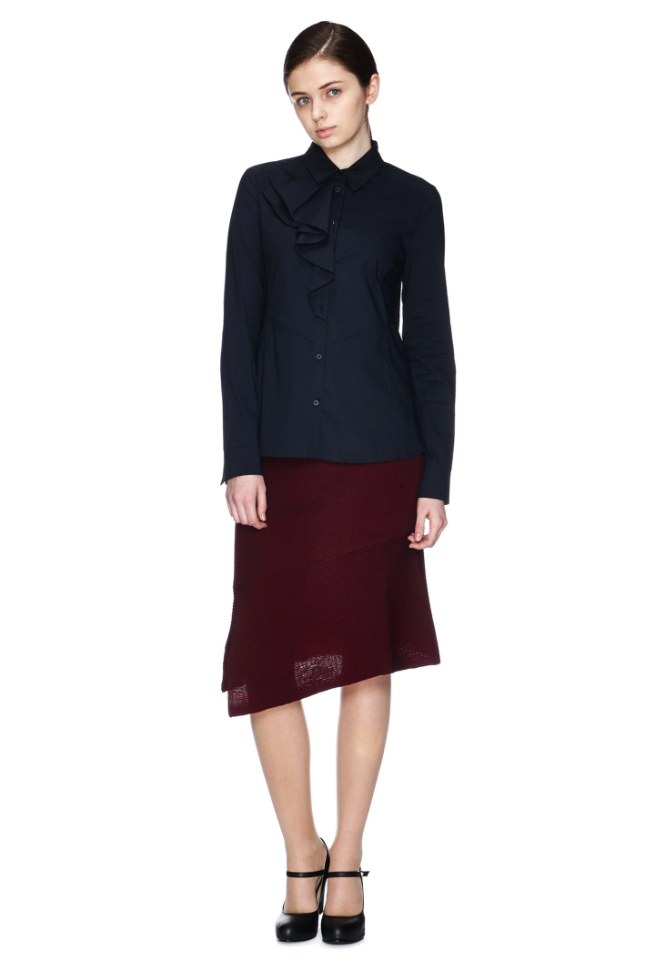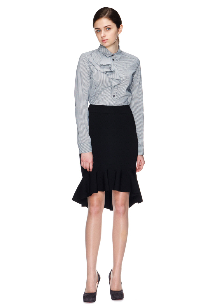 베이직한 셔츠 스타일에 전면 프릴장식이 페미닌한 무드를 연출합니다.