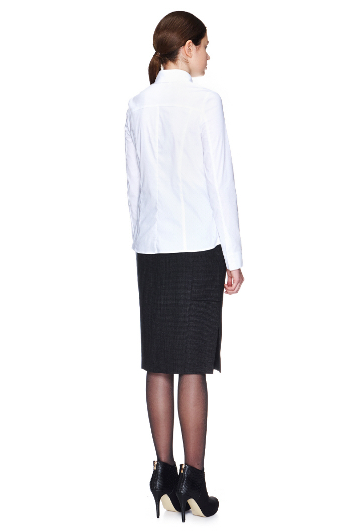 면 혼방의 심플한 셔츠형 블라우스입니다.