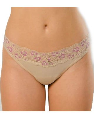 -. Feature : Patented natural technology liner wicks moisture, absorbs odor and protects clothing . No panty liner needed. / Dye free liner is doctor recommended / Made in America of light, soft, breathable Supima®cotton / Lower rise with a 2" soft lace waistband for added comfort. / Thong design eliminates visable panty lines
