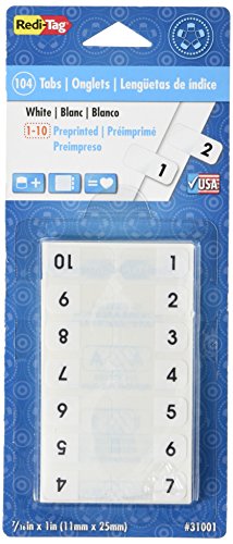 - Pre-printed 1 to 10 index tabs, measure 7/16 inches
