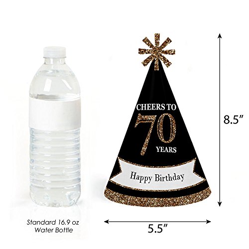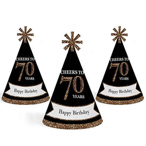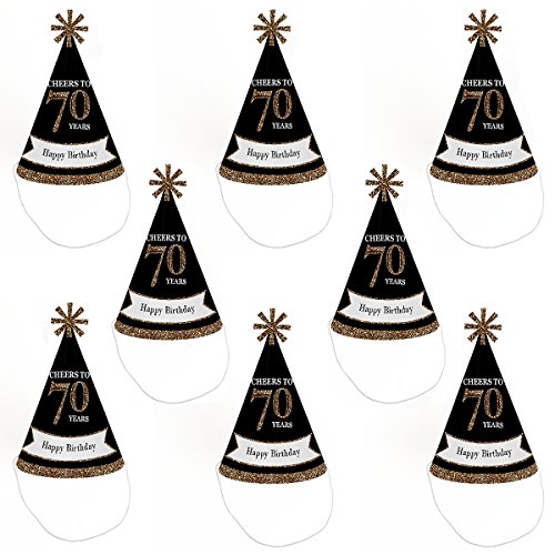-. Title : Adults 70th Birthday - Gold - Cone Birthday Party Hats for Kids and Adults - Set of 8 (Standard Size)