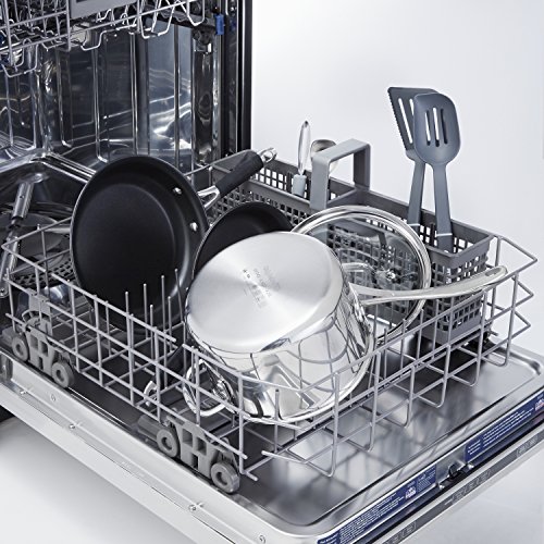Long, brushed stainless steel handles stay cool on the stovetop. All cookware is dishwasher-safe and carries Calphalon's full lifetime warranty.