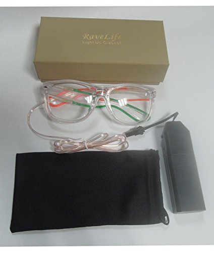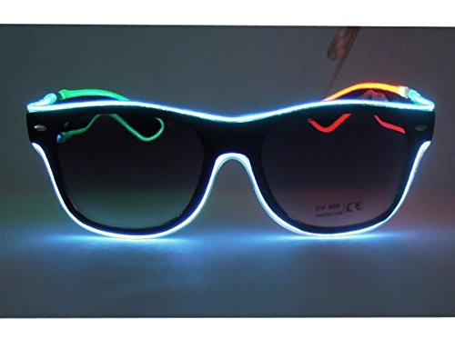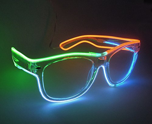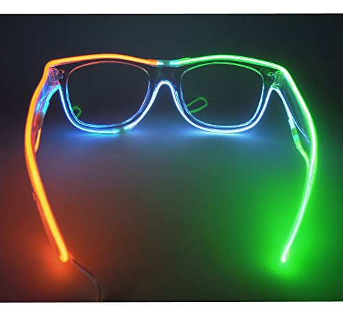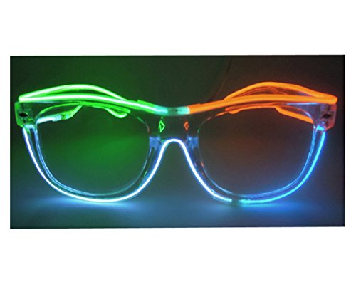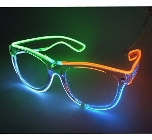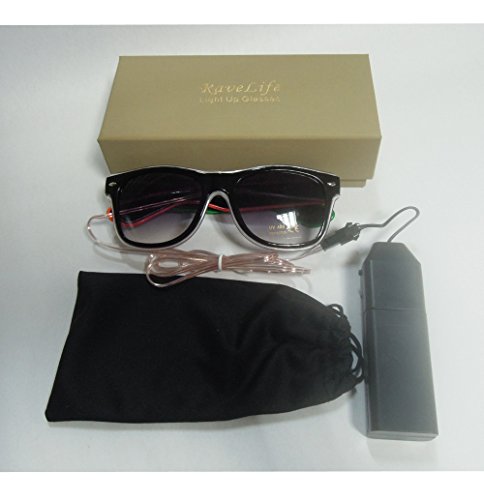 Feature Our light up glasses have 2 different colors,2 different lens and three flashing mode for different lighting settings, just one click to choose your favorite color for one Glovion LED sunglasses. As a gift Our light up glasses has a gift box package that can be used as a valentine's day gift, a birthday gift and so on What's Included -One light up glasses -Battery pack -Gift box Specification Material: Plastic Frame Length: Approx 5.71 inch Frame Height: Approx 1.97 inch Temple Length: Approx 5.91 inch Power:1.5V 2 x AA batteries (not included) Note: Due to the difference between different monitors,the picture may not reflect the actual color of the item. Power:1.5V 2 x AA batteries (not included) Note: Due to the difference between different monitors,the picture may not reflect the actual color of the item. Age Recommendation We recommend that a child be 12 years of age or older to use this product. Comment If you are happy with our product please spare some time to give us feedback and review. If you have any problem with your purchase please kindly email us before left neutral or negative feedback.we will try our best to serve you. 0 |