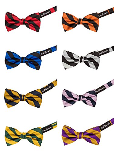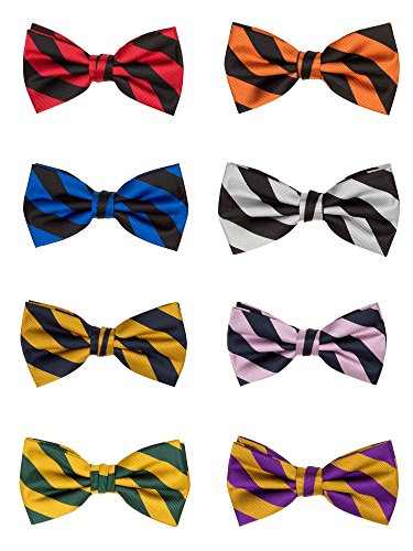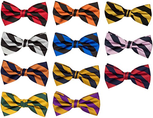 Binding : Apparel Product Description Classic preppy design in bar striped neckwear. Wear these dual color stripes to pay homage to your school or favorite color combo. Stripes measure a well balance 3/4" wide. The tie crafted friom a woven repp microfiber giving it a strong confident texture. Measures 2.5 x 4.75. 0