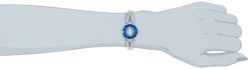 Slim bangle watch in stainless steel featuring faceted blue bezel and dramatic gradient dial with diamond at 12 o'clock
