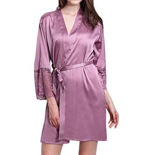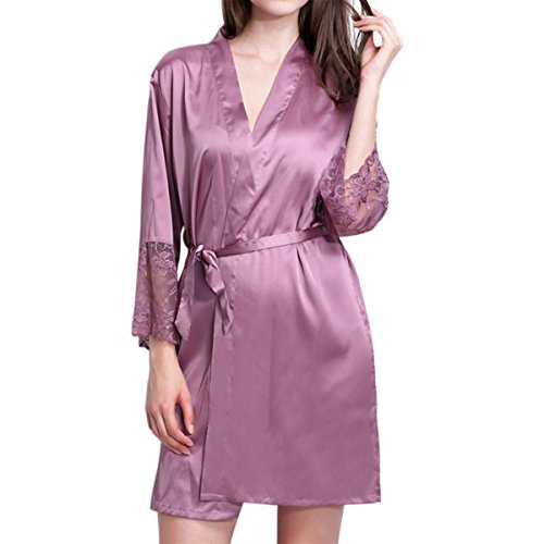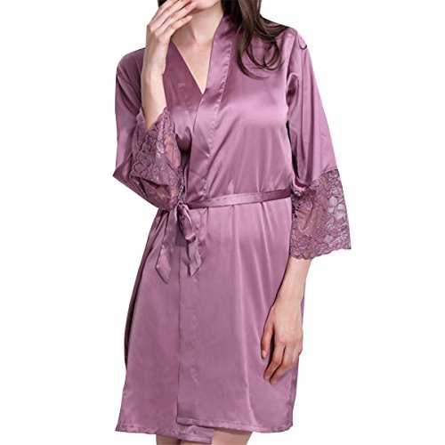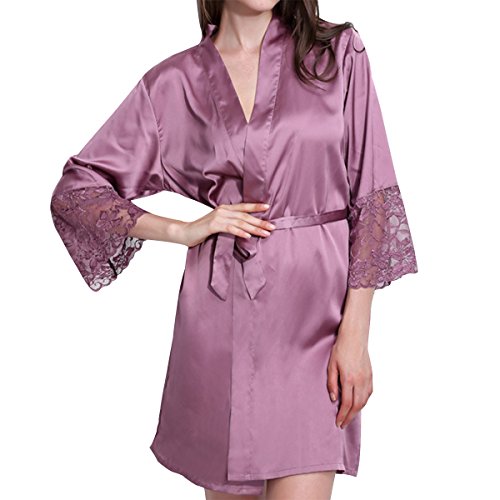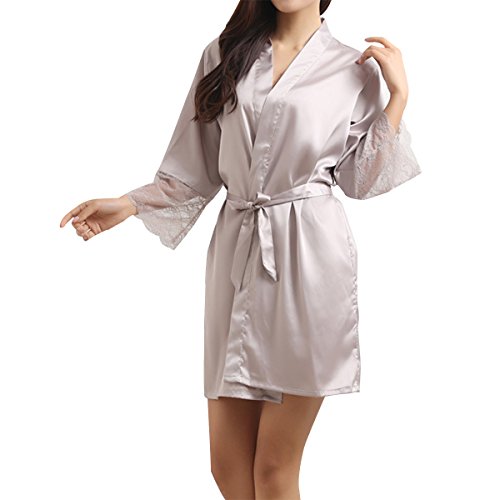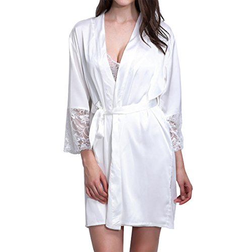 Product DescriptionLAPAYA Women's Short Kimono Robe Lingerie Bridal Silky Lace Trim Satin Sleepwear0