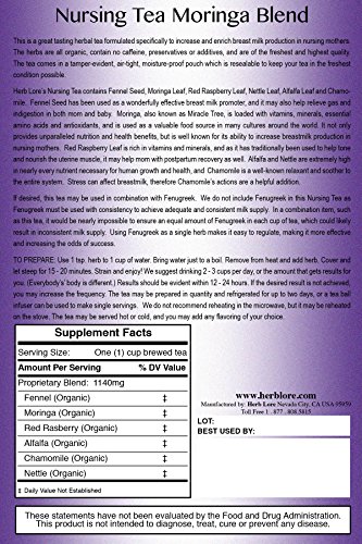 Herb Lore Organic Nursing Tea With Moringa - 60 Servings - Loose Leaf - Lactation Tea Helps Increase Breast Milk Supply Naturally And Calms Colic And Gas...