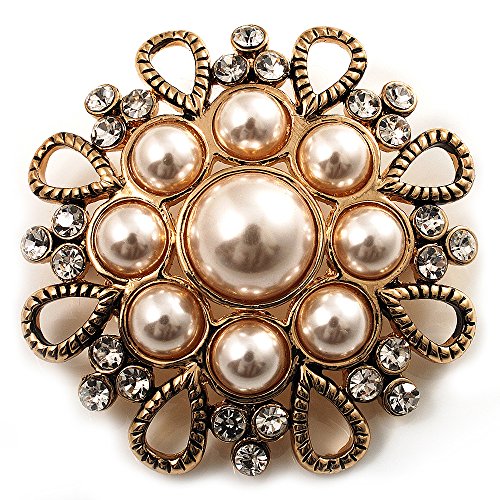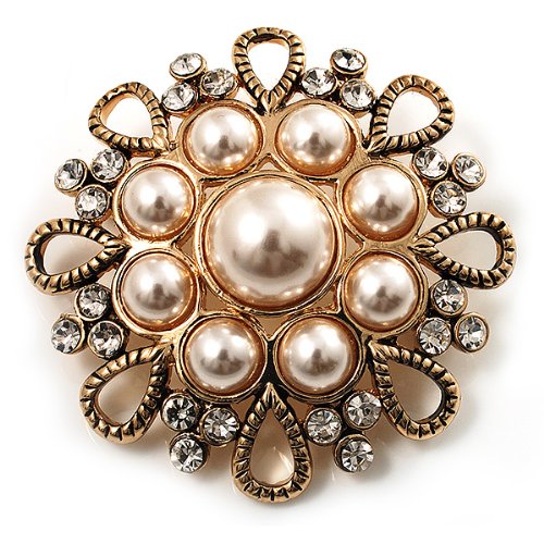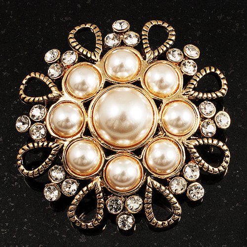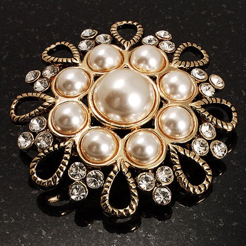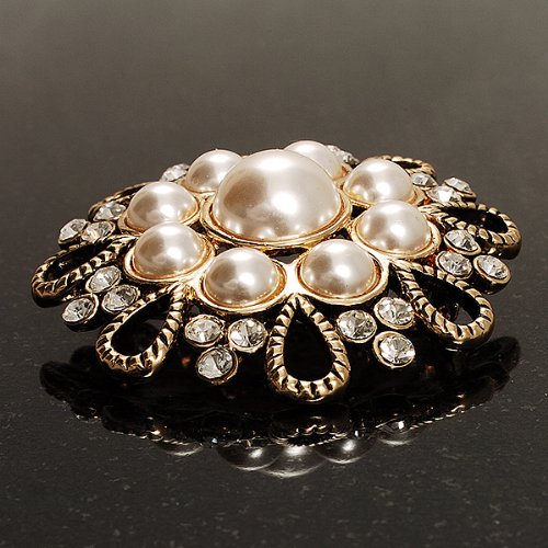 -. Title : Vintage Wedding Imitation Pearl Crystal Brooch (Burn Gold Tone)