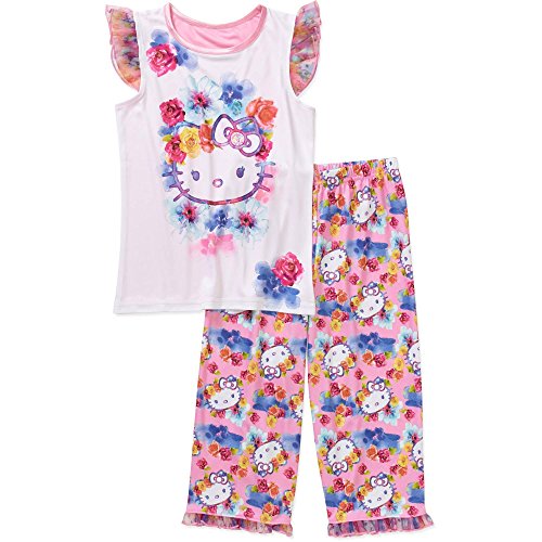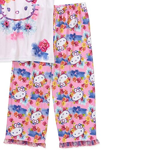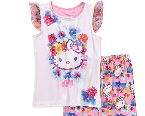 Your little girl will love this fun Hello Kitty Girls' License Short Sleeve Pajama Top & Sleep Pant Set. This two piece set features one flutter short sleeve top and one long printed pant with bottom ruffles. It has her favorite her kitty character as a front graphic. This set is perfect for sleepovers!Feature