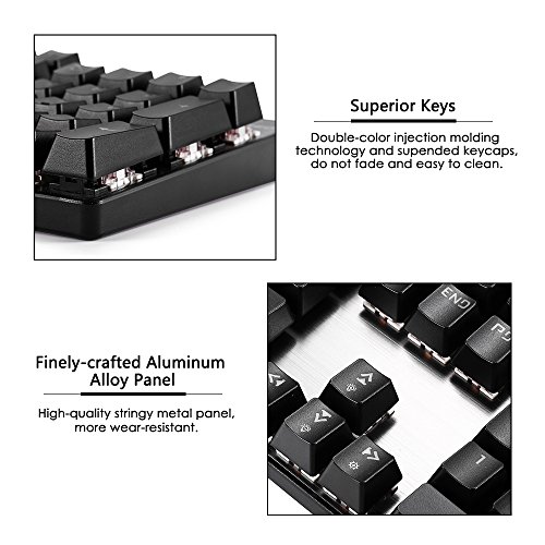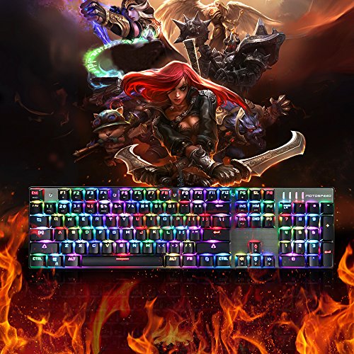 ☑This mechanical keyboard has 104 keys,built-in game chip, advanced mechanical switch technology, crisp typing sound gives you more pleasant sensation. All-key anti-ghosting, with 3ms faster response speed, more fluent for playing games, perfect for game enthusiasts to fully enjoy the pleasure of games