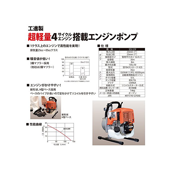 원본상품명: 工進 工進製 4サイクルエンジンポンプ(25mm) SEV-25F