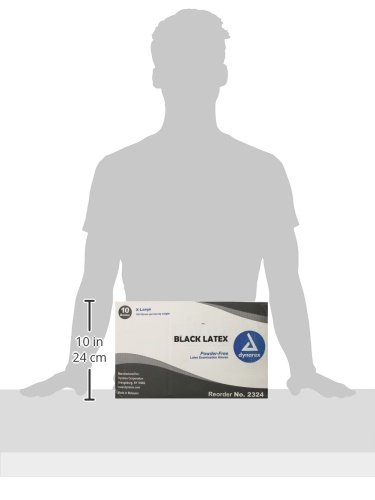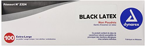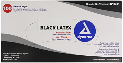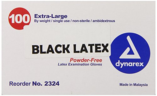 Dynarex 2324 Black Latex Exam Glove PF, X-Large, 100 Count (Pack of 10)