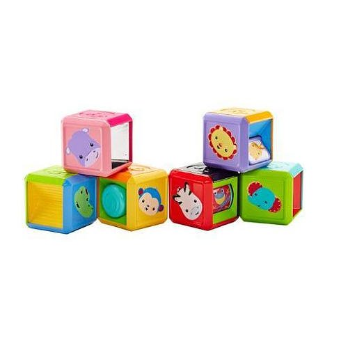 Flip, roll, squeak...rattle, feel, peek! These are the new building blocks of fun for your busy little one. Six character blocks feature lots for babies to see & do, stimulating their senses and helping them "build" fine motor skills too! And we've done some nifty construction of our own, making these toy blocks the perfect size for little hands to grasp, shake, stack & roll!Feature