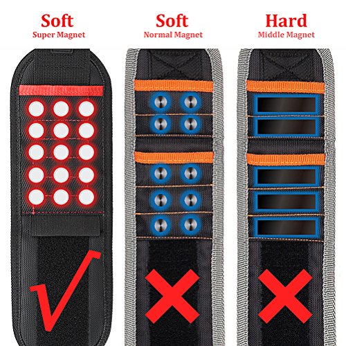 - 【15 Super powerful magnets, Are you serious? 】The magnetic wristband could hold hammer, you couldn't shake off your small component such as: screws, nuts, nials, drill bits and even hammer.