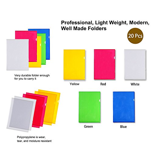 LoveS Clear document Folder Project Pockets, Letter Size, Set of 20 in 5 assorted Colors