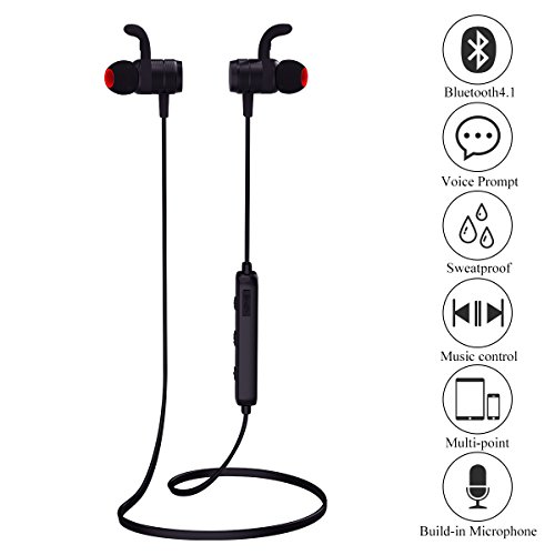 -. Feature : Multi-functional, Automated and Easy Operation ---Built in magnet support turn off or on by separating or Plying on the earphone as well as automated fast pairing by separating the earphone. / Intimate Fit and Stay Firm in Your Ears During GYM--- particular designed workout Bluetooth earbuds fits snugly into your ear when Exercise . Soft silicon ear hooks makes the sport headphones keep secure fit and comfortable. All of elaborately design makes these wireless earbuds will not fall out of ears during most active sports. Excellent Jogging Earphones for running,gym, dancing. They are also sweatproof headphones that can keep in during sweaty time . / Comfortable and Secure fit --- Active Buds feature Ergonomically designed flexible ear hooks with gel flex silicone earbuds to ensure your headphones stay comfortably firm in place to guarantee fatigue free ears and tangle free comfort. 3 different size of ear tips and inEar-hooks offered for selection and adjust to the most comfortable usage experience. / Noise Isolating MIC and Great Subwoofer --- Carefully selected cable wires offer significant quality audio which ensures outstanding sound quality. Clear, crisp and crystal like music comes out from the wireless sports noise isolating earbuds which can keep away the outside noise when put it in your ear . Makes you listen to your music and make a phone call clearly even in noisy environments like gym, fitness walk, subway/bus commute and flight trip. / 100% Quality Warranty & Money Back Guarantee ---100% checked before shipping and please email us for any question. Full refund or resend for any unsatisfied.These headphones are professionally designed for your music listening requirement in sports. They should not fail or break even during intense outworks. If there are any issues, we will give you a total refund or a replacement, at no cost with no questions asked. We just want your 100% satisfaction.