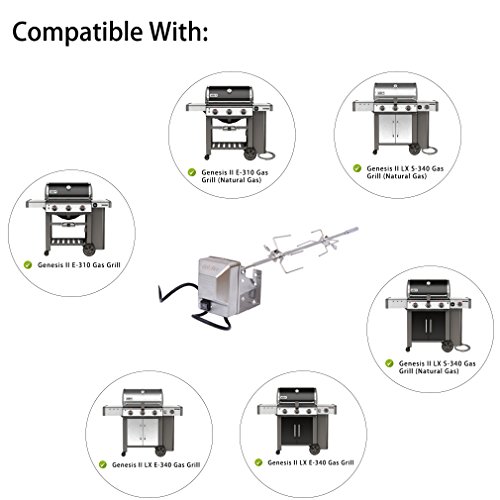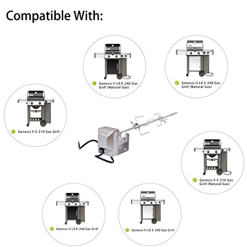 onlyfire Heavy Duty Stainless Steel Grill Rotisserie Kit Fits for Weber Genesis II and Genesis II LX 200 and 300 series gas grills