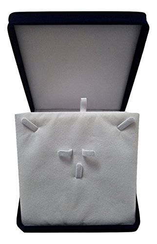 -. Feature : The interior lid is lined with white velvet to protect your jewelry from scratches / 5 hangers: 2 for necklace, 2 for earrings, 1 for bracelet / High quality navy velvet, hinged lid