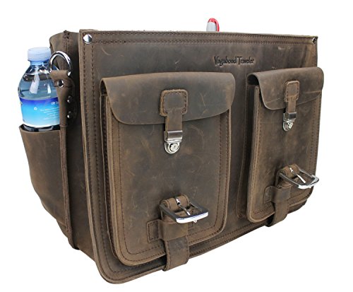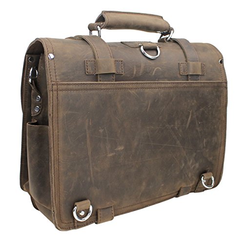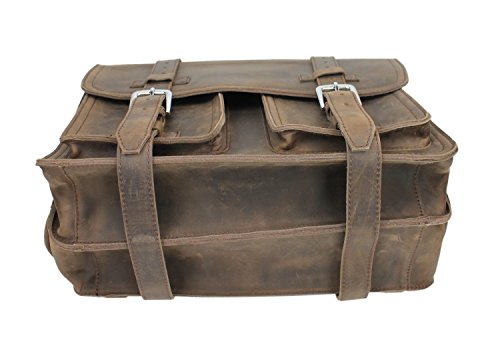 -. Brand : Vagabond Traveler -. Department : mens -. Feature : Dimension: 18 * 12.5 * 8"; weight 10 lb; strap length: 37.5 - 67" / Internal size: 16.5 * 12"; 2 large sections; 3 full leather straps / 2 front claps clock flap over pocket 8 * 6.7 "; 2 side pockets / Large back pocket; 4 internal pocket: 2 large and 2 small one / Heavy duty, full leather made; secure buckle closure -. ProductGroup : Apparel -. ProductTypeName : LAGE -. Title : 18" CEO Heavy Duty Full Grain Leather Large Briefcase Backpack. L31