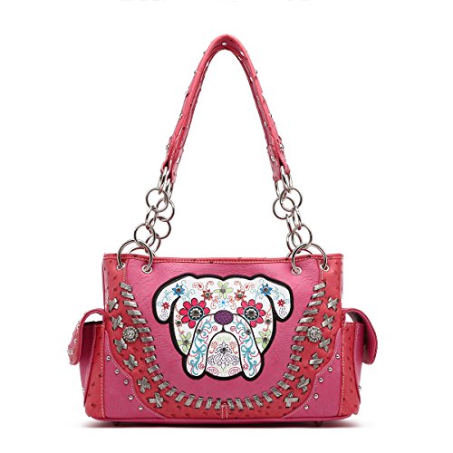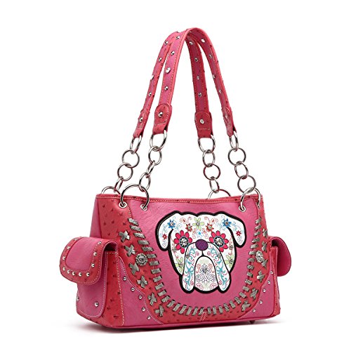 Western Handbag - Colorful Embroidered Bulldog Face Top Handle Satchel Handbag