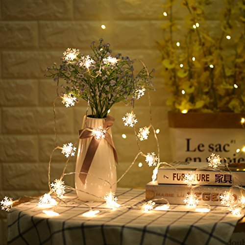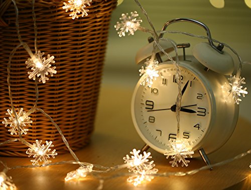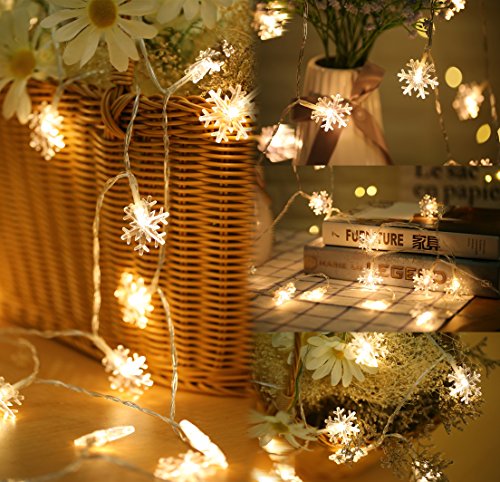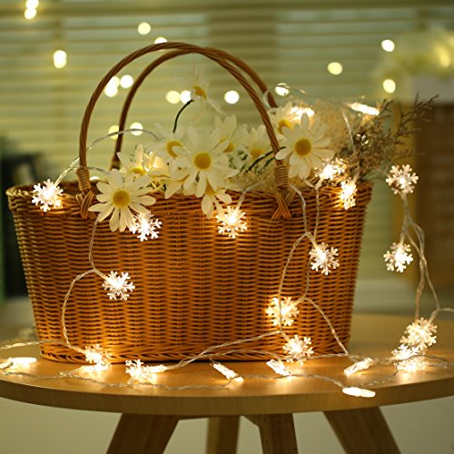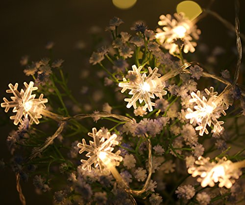 Decorative String Lights Snowflake Warm White 6M 40 LED Battery Operated Remote Control Timing Device Waterproof starfish Shaped Indoor outdoor Used for Christmas, Party, Wedding, New Year Decorations