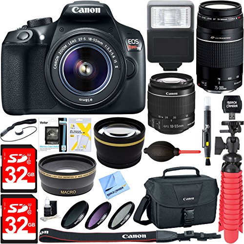Canon EOS Rebel T6 Digital SLR Camera w/ EF-S 18-55mm IS + EF-S 75-300mm Lens Bundle includes Camera, Lenses, Bag, Filter Kit, Memory Cards, Tripod, Flash, Cleaning Kit, Beach Camera Cloth and More
