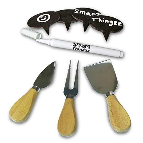- THE EXQUISITE KNIFE SET: Our comprehensive all-in-one kit with the concealed slide-out storage drawer hosts the set of 3 KNIVES, 4 NATURAL SLATE TAGS and the LIQUID CHALK MARKER to take your cheese serving experience to a new divine level! The Stainless Steel HARD CHEESE KNIFE, CHEESE FORK and CHEDDAR KNIFE with the steady-grip handle and the 4 four cheese/bread/meal natural slate labels and the will add a touch of class to your kitchen décor!