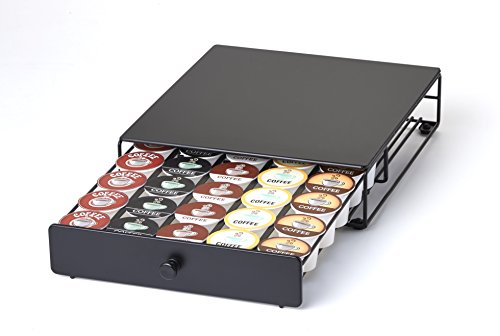 The Nifty Under the Brewer Coffee Pod Drawer is a stylish, space saving way to store your favorite K-Cup packs. The efficient, space saving design allows for you to place the brewer on top of the drawer, so your K-Cup packs do not take up any more of your precious counter space. The Nifty Under the Brewer Coffee Pod Drawer will organize up to 30 K-Cup packs. The sliding drawer construction makes selecting your favorite K-Cup extremely easy. The classy black powder coated design will look right at home on any kitchen countertop.Feature