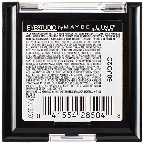 -. Binding : Misc. -. Brand : Maybeline New York -. Color : White -. IsAdultProduct : 0 -. Label : Maybelline New York -. Manufacturer : Maybelline New York -. ProductGroup : Beauty -. ProductTypeName : BEAUTY -. Publisher : Maybelline New York -. Size : 0.09 oz -. Studio : Maybelline New York -. Title : Maybelline New York Eye Studio Color Pearls Marbleized Eyeshadow, 0.09 Ounce