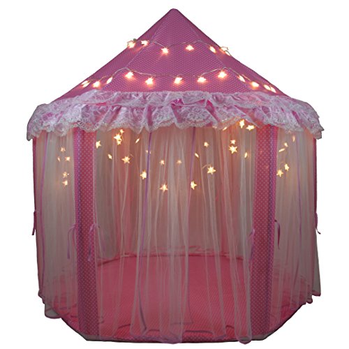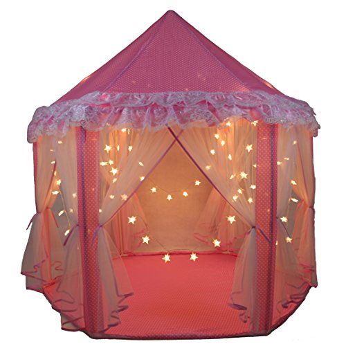 Studio : SkyeyArc Publisher : SkyeyArc Binding : Toy Product Description Features:? * SkyeyArc princess castle play tent will create a whole new space for children. Playing with dolls, having fun with friends, or reading a book, kids will love this excellent play tent! * The play tent can be placed virtually anywhere and be played throughout the year. With the battery operated 34 feet long 100 led star lights string, kids will have a wonderful night. * This portable lightweight play tent can be set up in a few minutes and no tools are required for assembly, it comes with a zipper carrying bag for convenient transport and storage. * Upgraded support poles, more firm and stable. * Variant versions are available, see more products from SkyeyArc. Guarantee: If you are not satisfied for any reason, please "Contact Seller" directly. We aim to provide best services and promise to reply all emails in 24 hours. No hassle, no delay, and no unnecessary question asked!? 0