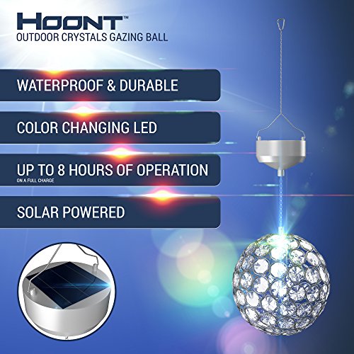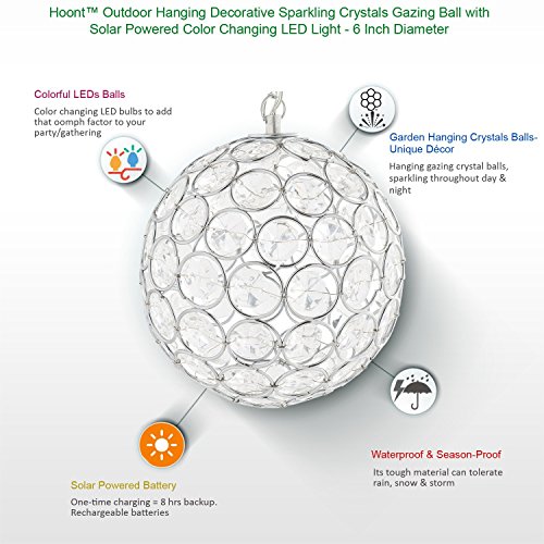Hoont™ Outdoor Hanging Decorative Sparkling Crystals Gazing Ball with Solar Powered Color Changing LED Light – 6 Inch Diameter