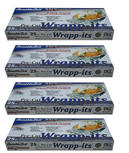 - Includes 100 (4 boxes of 25) precut, pop-up aluminum foil wraps 12 x 10 ¾ inch each - MADE IN THE USA!