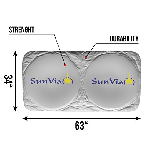 Car Sunshade Windshield UV Blocker Sunshield Car Protector Deflects 99% Ultra Violet Rays, Keep Your Car Cool And Looking It's Best, Includes FREE Carrying Case And Anti-Slip Gravity Mat- By Sun Via