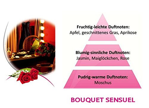 -. Feature : Duftend wie ein modernes Blumenbouquet und wie ein aufreizendes Duftwasser ist das blumige Parfum extrem feminin und sinnlich. / Kopfnote:geschnittenes Gras/Aprikose, Herznote:Rose/Maiglöckchen, Basisnote:Moschus / Zusammensetzung: Parfum, Wasser, Isopropyl-Alkohol