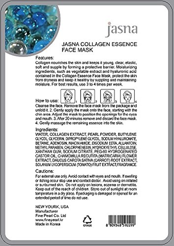 -. Binding : Misc. -. Brand : FINE PEARL -. EAN : 0753807462440 -. Feature : Pack of 10 pieces. Enriched with natural Pearl Powder and Collagen Essence / Pleasurable form of skincare that moisturizes & nourishes in just 20 minutes! / Provides an instant lifting effect that leaves you looking visibly younger in just a few treatments / Reduces fine lines & wrinkles, brightens skin, texture firming affect made from the finest Pearl Powder essence / Protects the skin from dryness and keeps it healthy by supplying and maintaining moisture -. IsAdultProduct : 0 -. Label : Fine Pearl -. Manufacturer : Fine Pearl -. MPN : 844176 -. PartNumber : 844176 -. ProductGroup : Beauty -. ProductTypeName : BEAUTY -. Publisher : Fine Pearl -. Studio : Fine Pearl -. Title : Moisturizing Energizing Pores Reducing Collagen Essence Face Mask Pack of 10 -. UPC : 753807462440