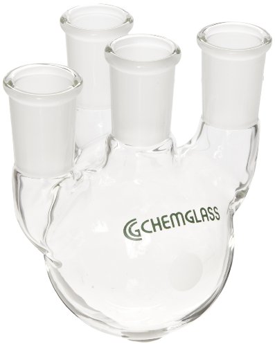 Chemglass CG-1530-15 Glass 5000mL Round Heavy Wall 4 Neck Bottom Boiling Flask with 45/50 and 24/40 Standard Taper Outer Joint