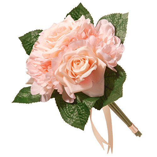 National Tree 12.2 Inch Mixed Peach Rose and Peony Bouquet (RAS-7555RPE-1)