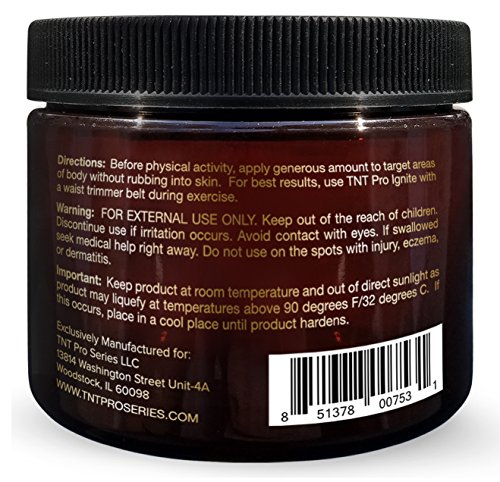 Studio : TNT Pro Series Publisher : TNT Pro Series Binding : Misc. Product Description TNT Pro Series presents TNT Pro Ignite; the ideal training aid for the serious athlete and anyone looking to sweat away the pounds using a colorless, non-staining advanced workout enhancer specially formulated to open pores, improve circulation, and produce more sweat during exercise. For best results, we recommend using a waist trimmer or other slimming device for best experience. Manufacturers Warranty: This product is backed with the TNT Pro Series Money Back guarantee - If you don't love it, you don't pay for it - Simple as that! 0