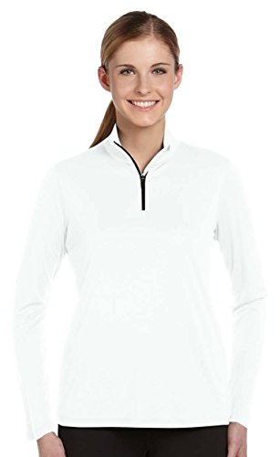 Dry wicking Anti-microbial Set-in sleeves Quarter front-zip 100% polyester Brand : ALO Sport Item model num : W3006 White L EAN : 0852672661191 Product Dimensions(LxWxH) :