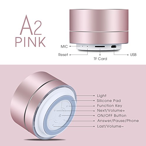 Kunodi A2 Bluetooth 4.1 Portable Wireless Outdoor/ Sport / Car Loud Speakers with Hands-free Function, Built-in Mic, More bass for iPhone, iPad, Blackberry, Samsung and More (Rose Red)