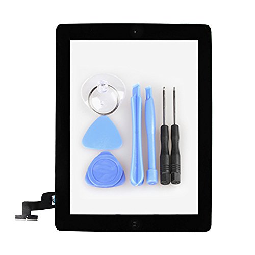 RabbitStorm Digitizer Touch Screen Front Glass Assembly for ipad 2 Black-Includes Home Button + Camera Holder + PreInstalled Adhesive with tools kit