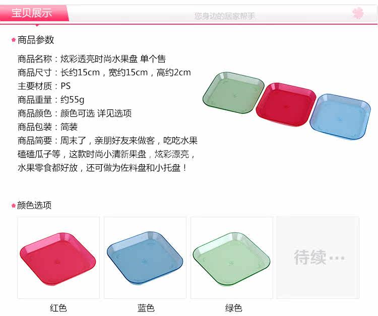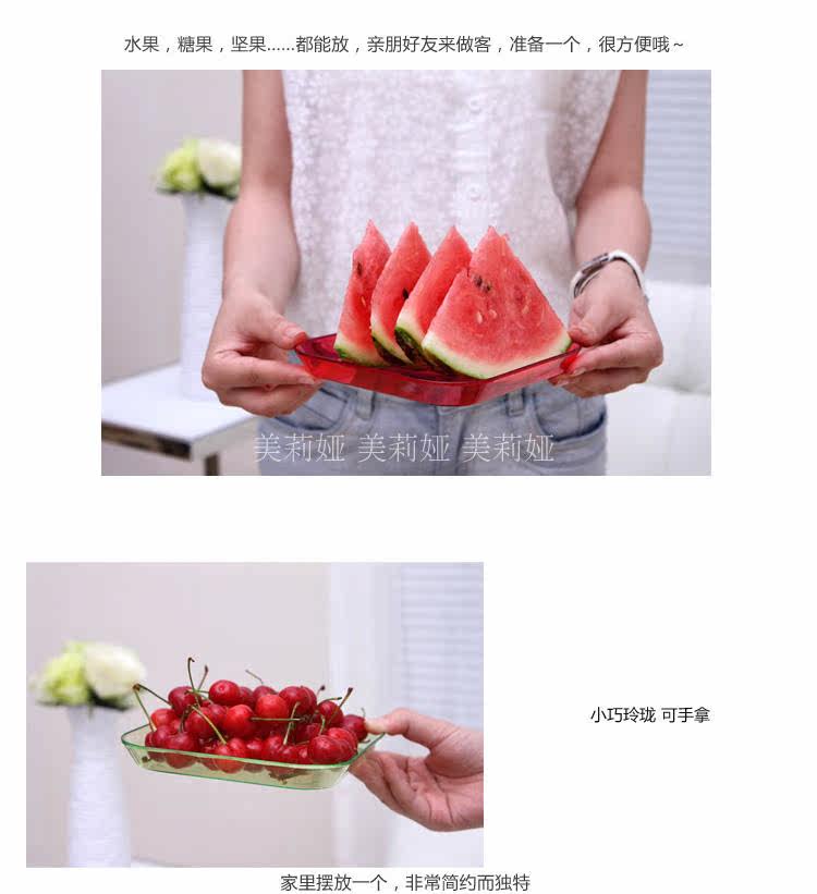 塑料方形水果盘 客厅水果碟小吃碟子 家用厨房茶几糖果盘平底盘子