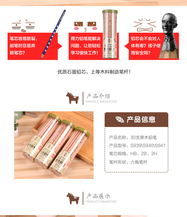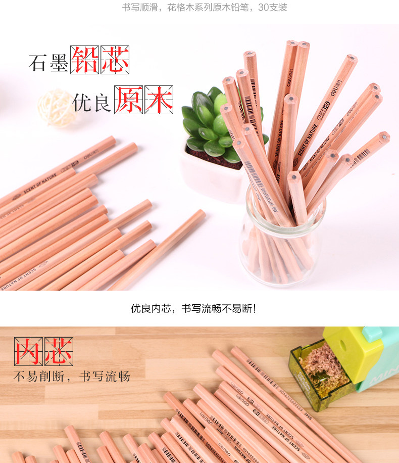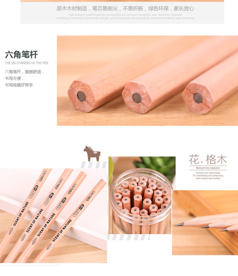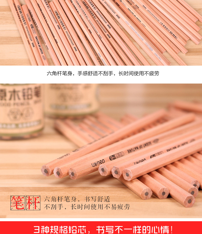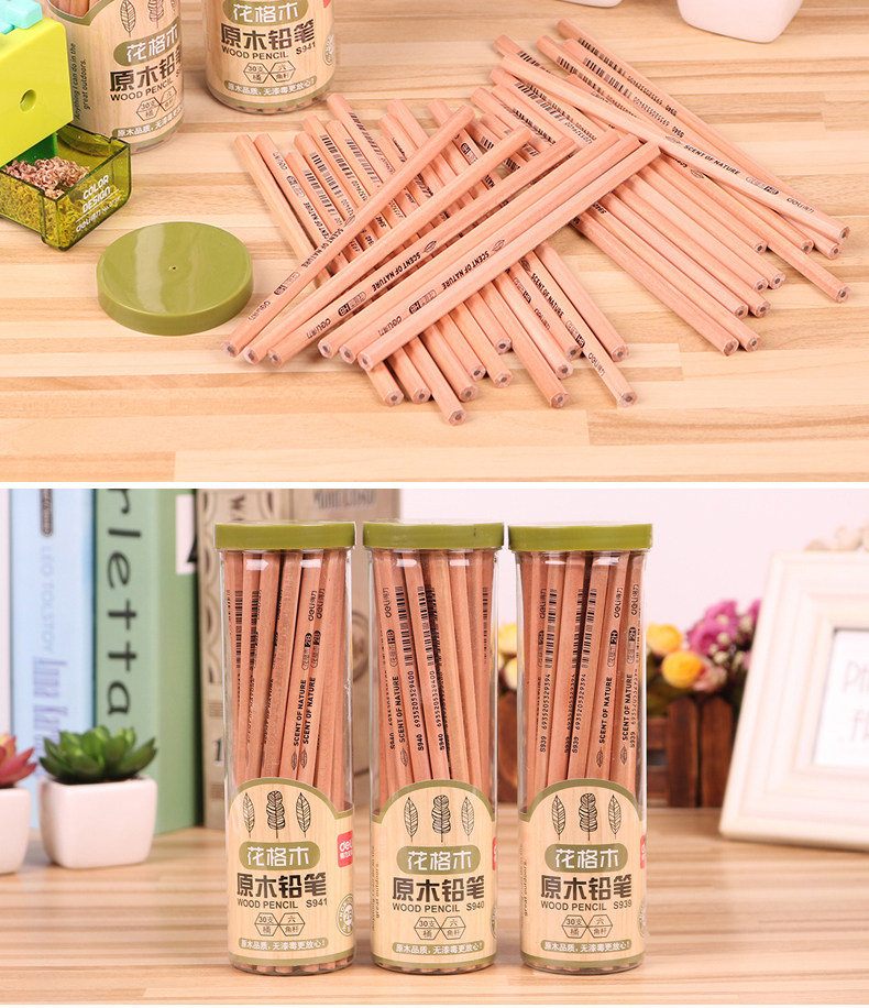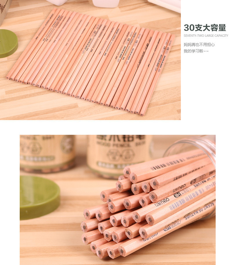 铅笔30/50支原木桶装铅笔HB/2H/2B铅笔六角学生写字铅笔