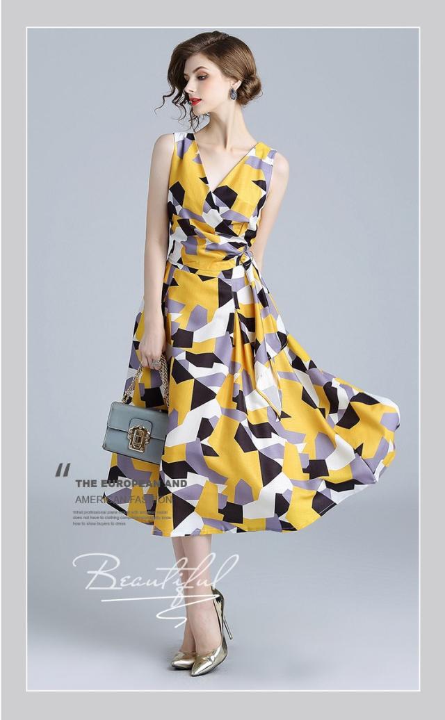 総柄 マキシ丈 ノースリーブ ロング ワンピース ドレス デート 食事会 女子会 買い物