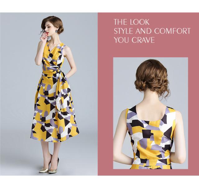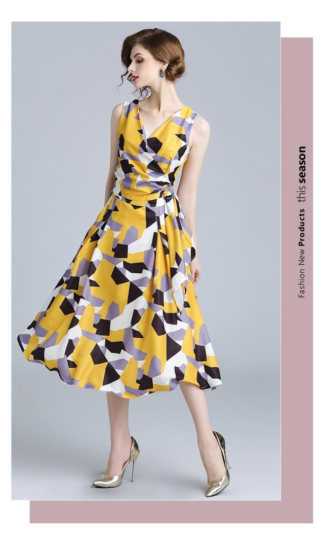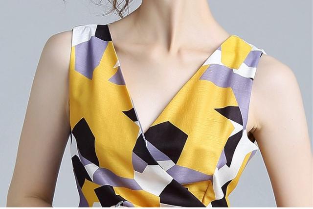 夏らしい柄が集まったマキシ丈ノースリーブワンピース。