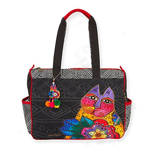 -. Feature : Fabric/Heavy Duty Cotton, Top zip closure. Laurel Burch original zipper pull. / 15 x 4 x 10. Perfect size to carry around. Convenient side pockets on both sides. / Double carrying handles. Handle drop: Approx. 9". Matching wooden tag included. / Unique Laurel Burch "Mara" in front and back. Vivid Colors. Interior features zipper pocket. Water resistant lining. / Great gift idea for Laurel Burch fans and cat lovers.