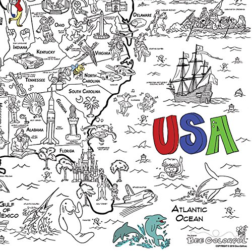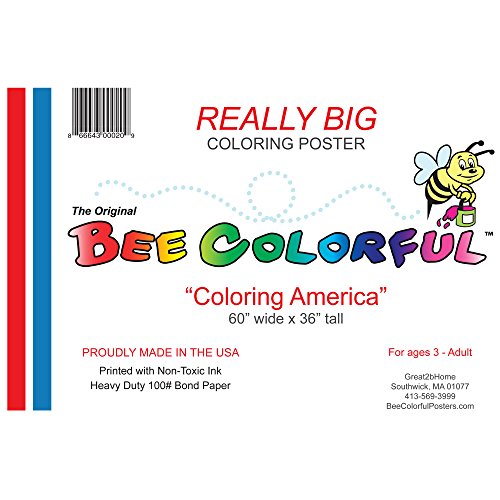 So beautiful, for spacious skies! Color amber waves of grain and purple mountain majesties above the fruited plain. This amazing tribute to the United States of America is sure to inspire pride and patriotism as you color your way through all 50 states discovering interesting facts and historical trivia. This magnificent piece of original artwork is signed and dated by Alexander T. Lee. Printed with non-toxic latex ink on sturdy 100# paper (greeting card thick!) that can be rolled and unrolled multiple times and will handle most, if not all, coloring media including crayons, markers, marker brushes, water colors and more. Bee Colorful is a trademarked brand and we can only guarantee original designs that have our logo and copyright printed on each poster. Our guaranteed posters will ship from the United States only. Made in the USA.Feature
