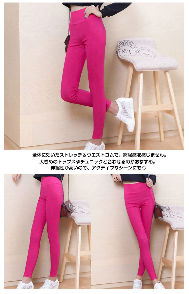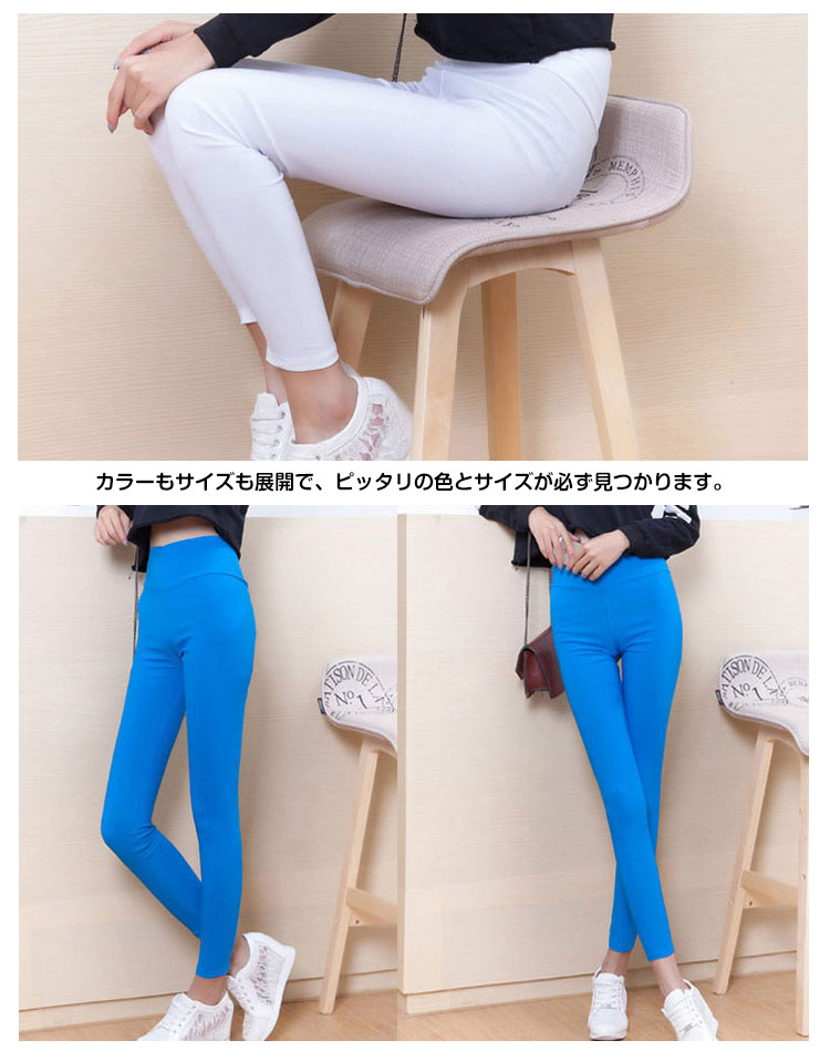 | レッグラインにぴたっとしたフィット感で美脚ラインハイウエストメイクレギパン?♪さらっとライトな生地はこれからの季節にピッタリ♪ソフトな肌触りとしっかり伸縮する素材で一度履いたらやみつきになる履き心地☆余裕な飾りないシンプルデザインだから万能なアイテムになります。全体に効いたストレッチ&ウエストゴムで、窮屈感を感じません。大きめのトップスやチュニックと合わせるのがおすすめ。伸縮性が高いので、アクティブなシーンにも◎カラーもサイズも展開で、ピッタリの色とサイズが必ず見つかります。 | |