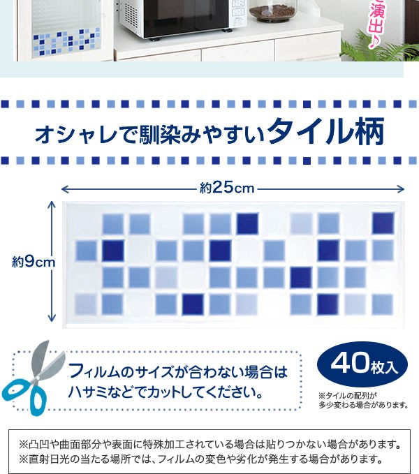 鏡や室内のガラスなど平滑面に粘着剤無で貼れる汚れを目立たせにくいフィルム。オシャレに汚れを目立たなくさせ、簡単に取り外せるフィルムです。 内容量/40枚 サイズ/25×9cm 素材・材 質/ポリプロピレン 製造国/日本※お届け地域により、別途運賃がかかる場合やお届けできない場合がございますので、お問い合わせ下さい。