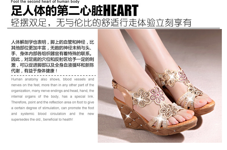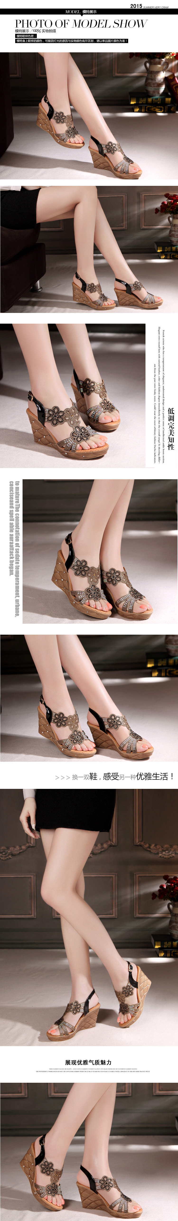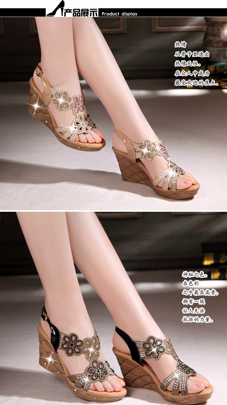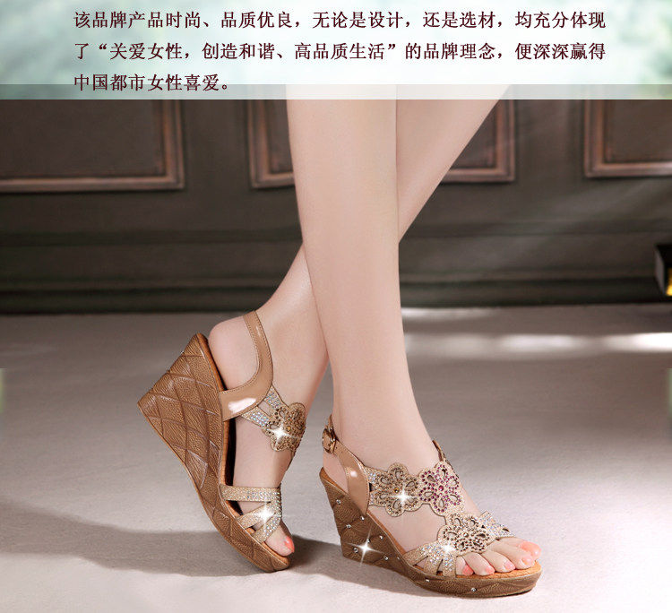 夏新款凉鞋欧美水钻罗马高跟坡跟防水台凉鞋